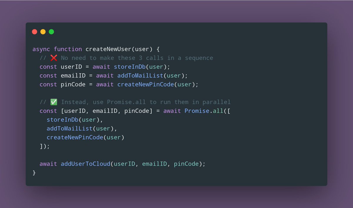 Missing out on the opportunity to run Promises in parallel can severely slow down your application.