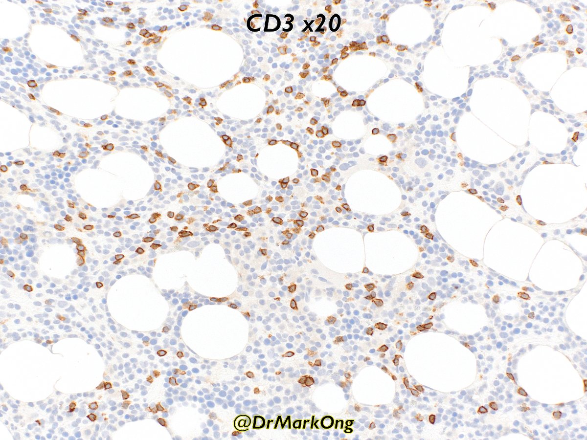 Secondly, the WBC was only 3.0. Given the B-cell numbers in the marrow, the absence of a leukaemic component is very unusual.