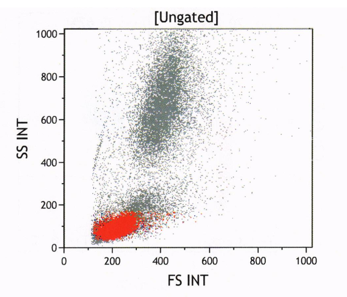 SS = side scatter = optical complexity of cytoplasm (lymphocytes⬇️, neutrophils⬆️)