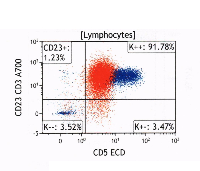 B-cells are CD5+ CD23+ FMC7- CD79b+