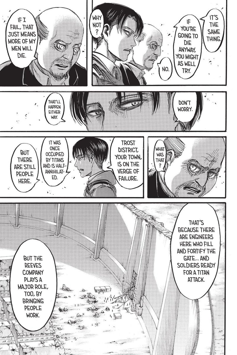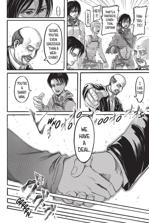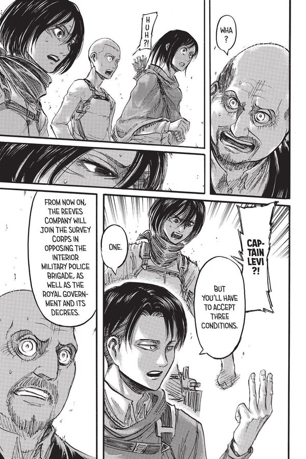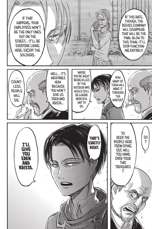 Like when she lets Levi bet Eren to make a deal with Reeves to save Trost’s starving citizens